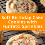 Soft, chewy, bakery-style birthday cake cookies packed with vanilla flavor, rainbow sprinkles, and white chocolate chips for a festive treat that is easy to make and perfect for celebrations.