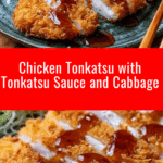 Chicken Tonkatsu (Japanese Cutlet) — a crispy, breaded and fried chicken cutlet served with tonkatsu sauce, often with shredded cabbage and rice.