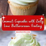 Light and moist coconut cupcakes topped with a zesty lime buttercream frosting, offering a perfect balance of tropical sweetness and refreshing citrus flavor.