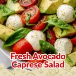 A fresh and creamy avocado Caprese salad combining ripe avocados, juicy tomatoes, and soft mozzarella tossed in a rich, tangy dressing for a light yet satisfying dish.