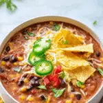 A creamy, hearty vegetarian tortilla soup with a spicy tomato base, black beans, corn, and crispy tortilla strips. It’s easy to make, packed with flavor, and perfect for a cozy weeknight dinner.