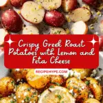 Crispy Greek lemon feta roast potatoes with golden edges and soft centers, infused with garlic, herbs, and bright lemon juice, then finished with creamy melted feta and fresh parsley.