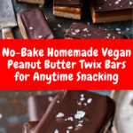 These Homemade Vegan Peanut Butter Twix Bars are a no-bake dessert featuring a soft shortbread base, creamy peanut butter caramel, and a rich chocolate topping. They’re easy to make, gluten-free, and perfect for snacking or sharing.