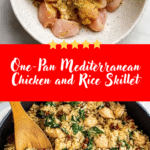 A flavorful one-pan Mediterranean chicken and rice skillet made with juicy chicken thighs, fragrant rice, tomatoes, olives, herbs, and finished with feta, parsley, and lemon for a comforting yet fresh dinner.