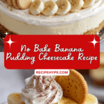 A rich and creamy no-bake banana pudding cheesecake with layers of smooth cheesecake filling, fresh bananas, and a buttery vanilla wafer crust, perfect for an easy and indulgent dessert.