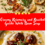 A comforting and creamy white bean soup infused with sweet roasted garlic and aromatic rosemary. This rustic yet elegant soup delivers deep flavor without relying heavily on cream, making it nourishing, budget-friendly, and perfect for cozy meals.