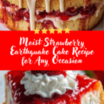 I love making this Strawberry Earthquake Cake when I want a dessert that feels indulgent without requiring complicated steps. The cake bakes into a wonderfully uneven surface, with pockets of creamy filling and bursts of sweet strawberries throughout. The texture is rich, soft, and slightly gooey in places, which makes every slice a little different from the last. It’s the kind of dessert I make when I want something eye-catching, comforting, and full of flavor. Strawberry Earthquake Cake